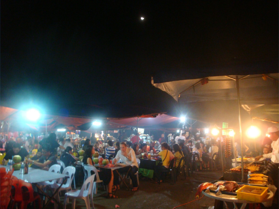 マレー系、中国系など多くの人々が暮らしているボルネオ島の市場。夜になっても非常に活気があり、さまざまな食材が並んで世界の多様性が感じられる。「世界を見ることで自分の《やわらか頭》が養える」とは、椎名誠『アイスプラネット』(講談社)の言葉。