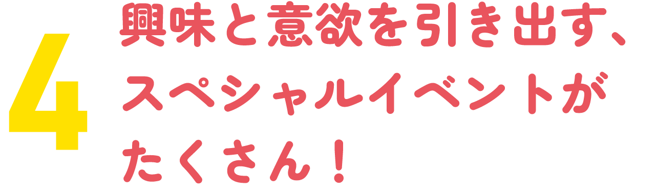 理科実験、ことわざカルタ大会、探求学習講座など、意欲と興味を引き出すスペシャルイベントが、年間を通じてたくさんおこなわれます。